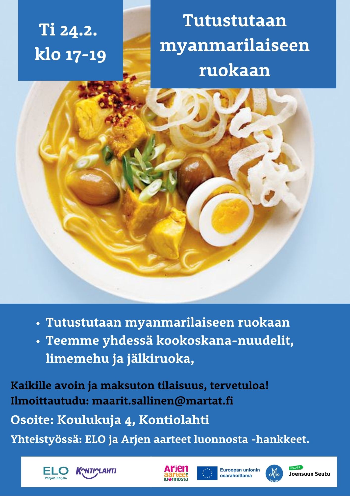 Lämpimästi tervetuloa ruokakurssille 24.2. – Kulttuurikahvilassa tutustutaan myanmarilaiseen ruokaan! Vietetään mukavaa monikulttuurista iltaa herkullisen ruoan kera. Teemme yhdessä kookoskana-nuudelit, limemehu ja jälkiruoka ❗️ Lapset ovat tervetulleita! Maksutonta osallistujille. Ilmoittautuminen: maarit.sallinen@martat.fi tai Majalle: maja.szwarczewska@kontiolahti.fi, 050 3099250. Nähdään Kontiotuvalla klo 17 - Koulukuja 4, Kontiolahti. _______ A warm welcome to the cooking course 24 February 2026 – […]