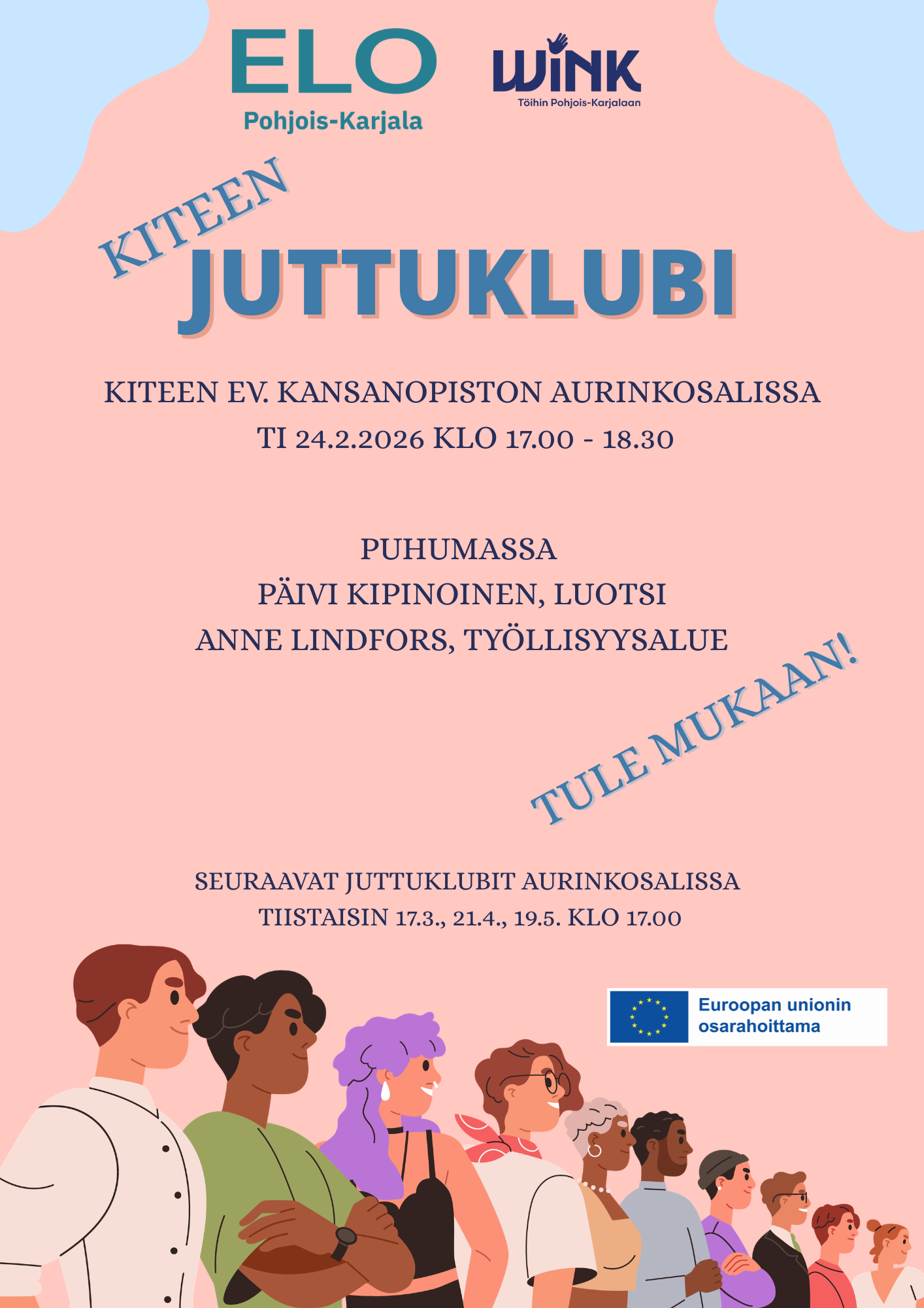 🌍 Kiteen Juttuklubi: Aihe työ ja työllisyys HUOM! PERUTTU Haluatko tietää: Miten löydän työpaikan? Mistä saan apua työnhakuun? Mitä palveluja on tarjolla Pohjois-Karjalassa? 📍 Paikka: Kiteen evankelinen kansanopisto, Aurinkosali 📅 Ti 24.2.2026 ⏰ Klo 17.00–18.30 Puhujat: Päivi Kipinoinen (Luotsi-palvelut) Anne Lindfors (Työllisyysalue) Tilaisuus on avoin kaikille. Voit kysyä, kuunnella ja keskustella. 💬 Tule mukaan! 🇬🇧 […]