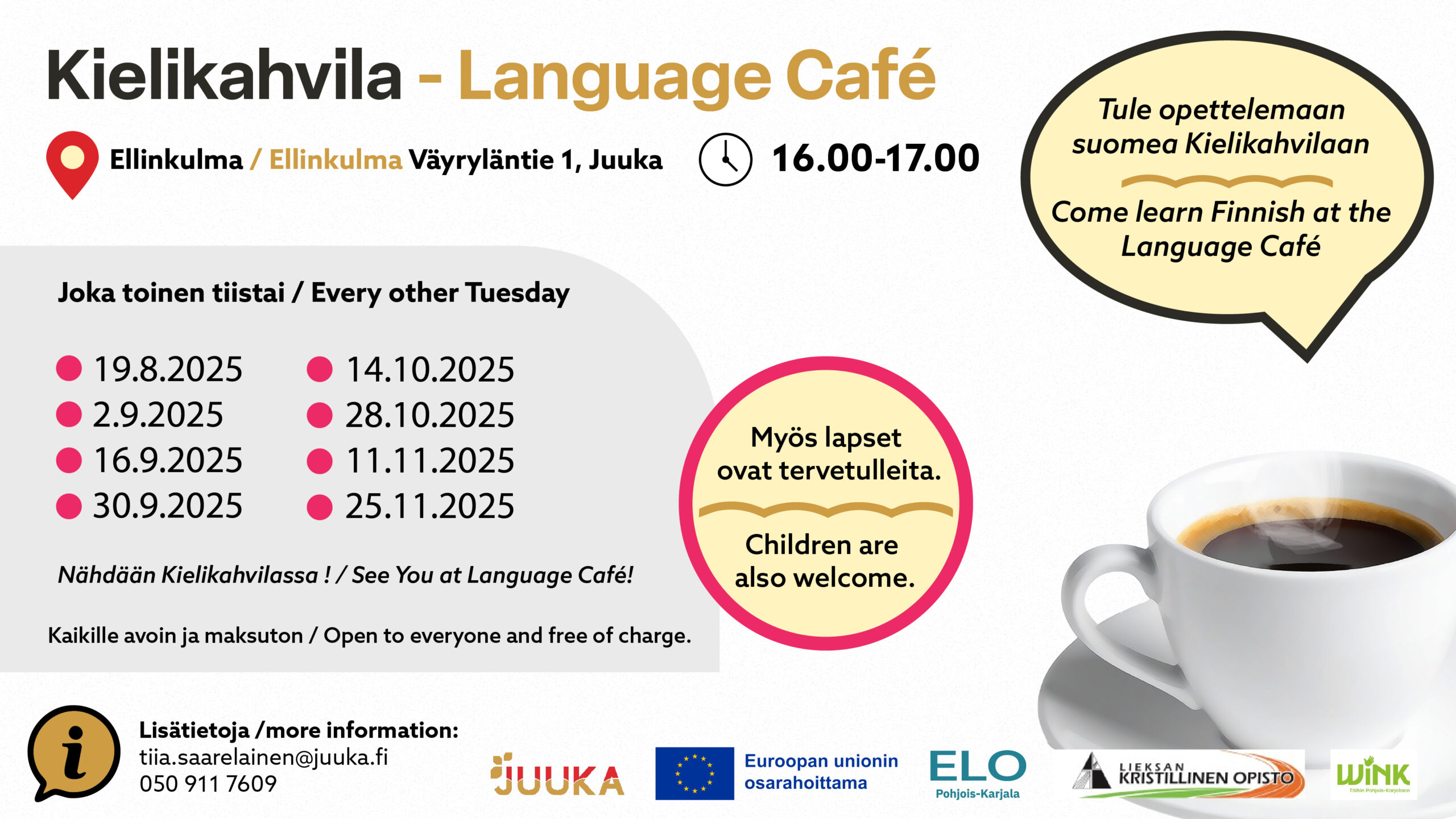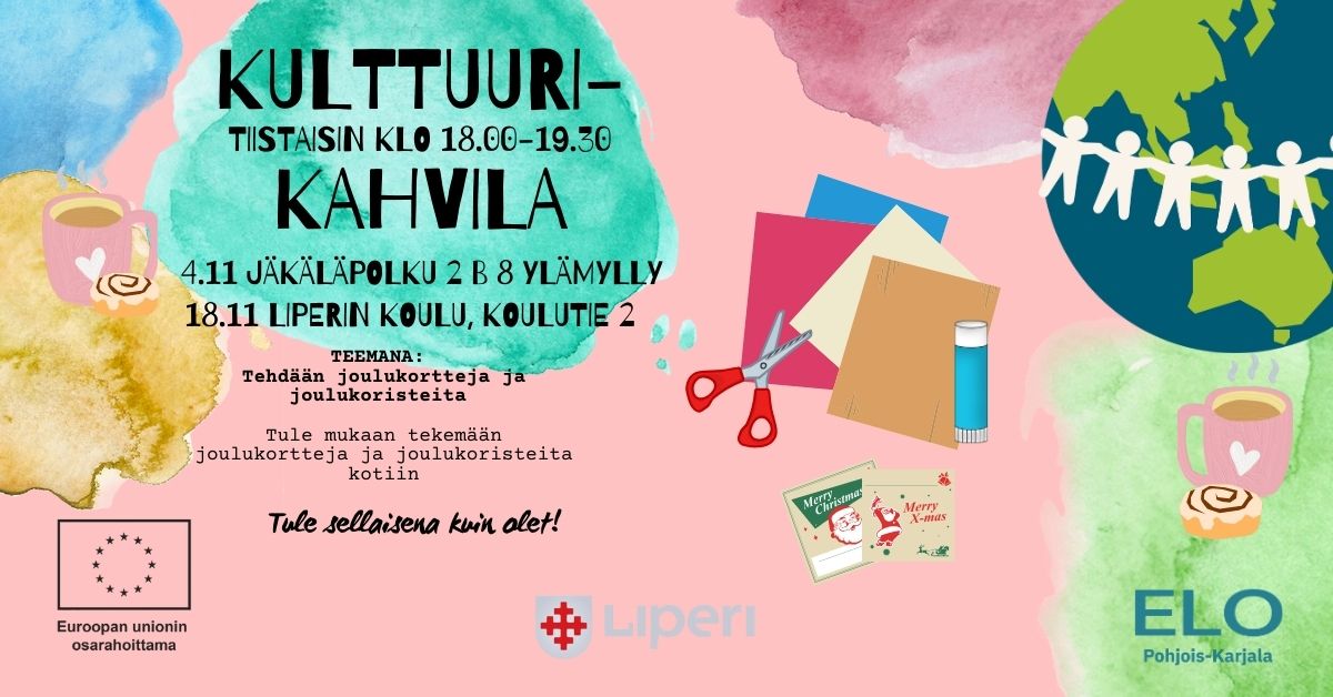 Ylämyllyn Jäkäläpolku Jäkäläpolku 2 B 8, Ylämylly, FinlandJoulukorttien tekoa Luodaan yhdessä kauniita joulukortteja tai muita jouluun liittyviä koristeita. Tarvikkeet löytyvät paikan päältä, tuo vain oma luovuutesi ja joulumieli! Tekemäsi kortit saat mukaasi. Tällä kerralla suunnittelemme myös kevään kielikahviloiden teemoja. Tule mukaan vaikuttamaan! **********************''' Let’s create beautiful Christmas cards or other holiday decorations together. All materials will be provided – just bring your […]
